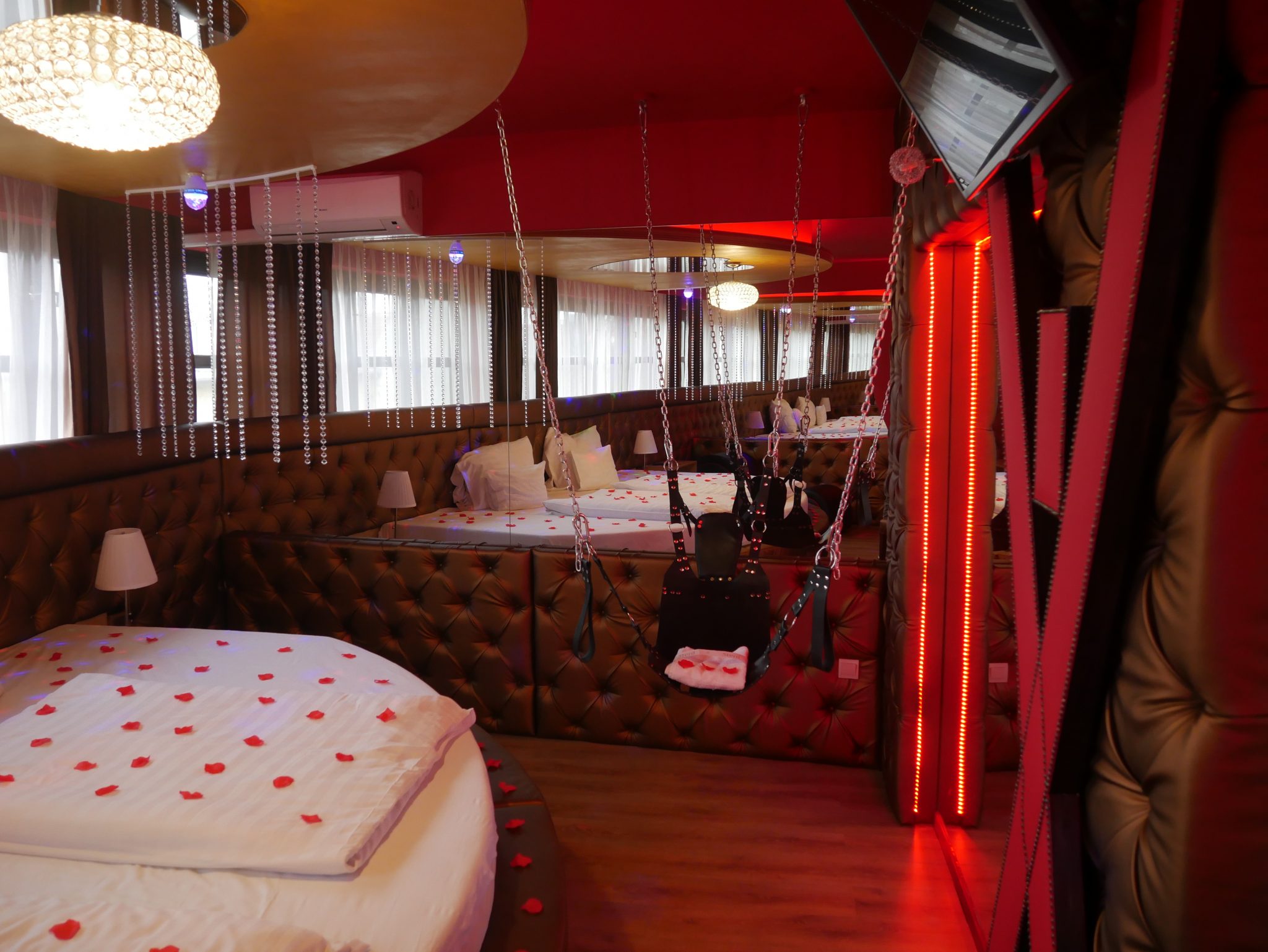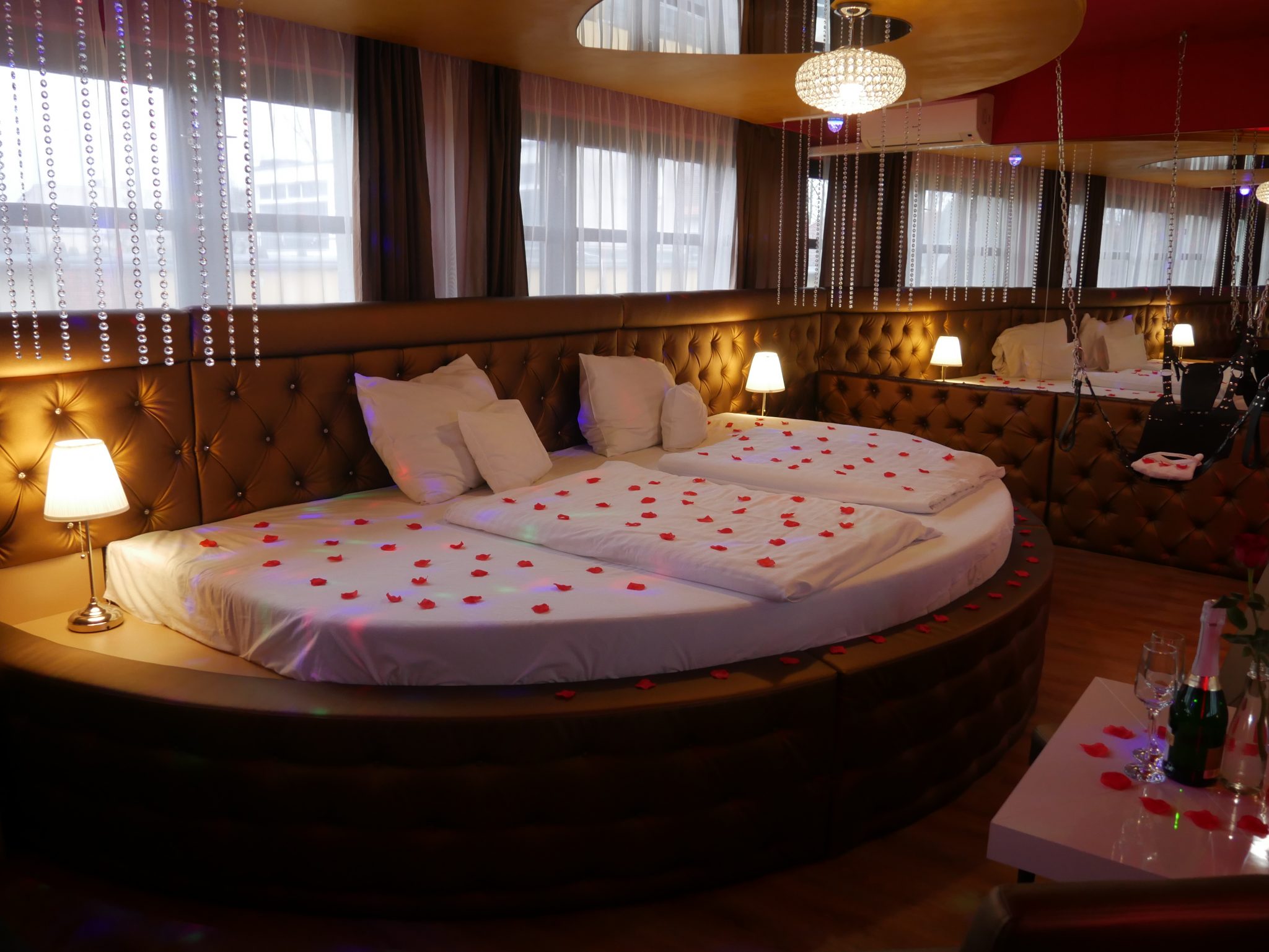 Élményelemek: Káma-pad, Káma-fal, tantra ágy, szexhinta, tükör az ágy felett és a falakon